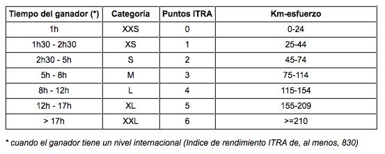 Ejemplo: Una carrera de 65km con 3.500m de desnivel positivo = 65 + 35 = 100 km-esfuerzo.